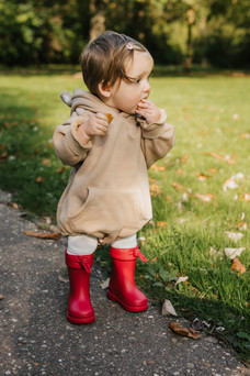 At least our fourth shoot together, and what a beautiful thing to capture. A mum with her brood, one running around and helping me throw leaves, and the other just beginning her walking life. So much joy, and the red wellies looked wonderfully bold against the leaves.